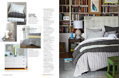 The second layout has a bit more contrast in scale. The right page has a full bleed nicely cropped shot of the bed. The left page has four insets that have the products framed up nicely with room to breathe. Like the first layout, the contrast creates a nice visually interesting spread.